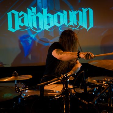 As a founding force behind Oathbound, Taylor anchors the band’s live sound with precision and intensity. On stage, his playing balances control and release — driving the band forward while letting the music breathe in moments of tension and space.